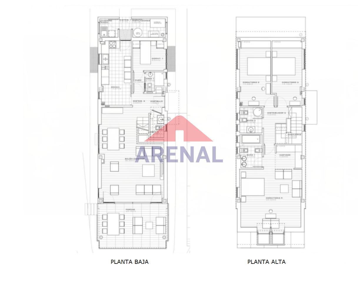 PL. BAJA: dispone de vestíbulo abierto al salón-comedor con grandes ventanales y comunicado con una terraza cubierta de 18 m2, cocina equipada y cuarto de aseo. En suite tiene un pequeño dormitorio con cuarto de baño (ducha).