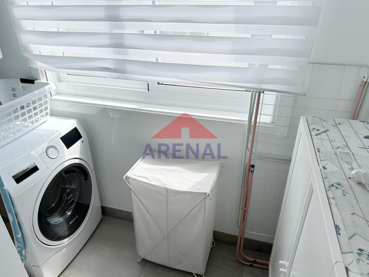 Distribuido en vestíbulo, salón con pequeña terraza, cocina con cuarto de lavandería, dormitorio principal con cuarto de baño (ducha), otro dormitorio y un baño común (bañera).