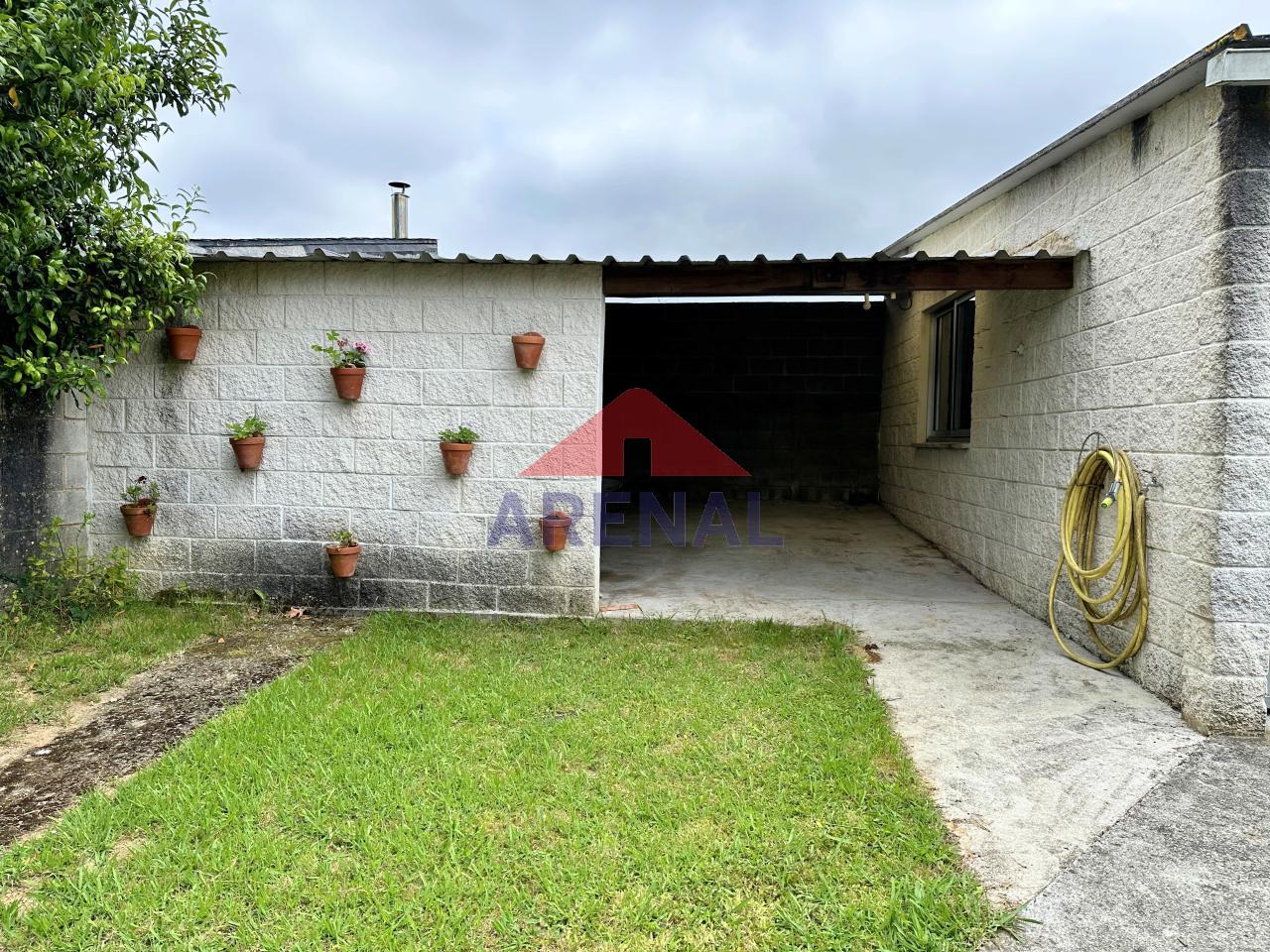 La parcela totalmente cerrada con muro de bloque cuenta con pavimento de hormigón en la entrada al garaje y zonas perimetrales de la vivienda. En la parte trasera tiene un cobertizo y una bodega-almacén. En la zona delantera tiene un bonito porche rústico con barbacoa.